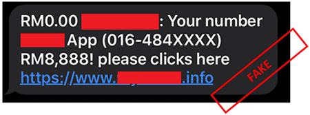 This is to mislead victims into revealing their personal & banking details such as account/credit card details & the One-Time Password (OTP)/Transaction Authentication Code (TAC).